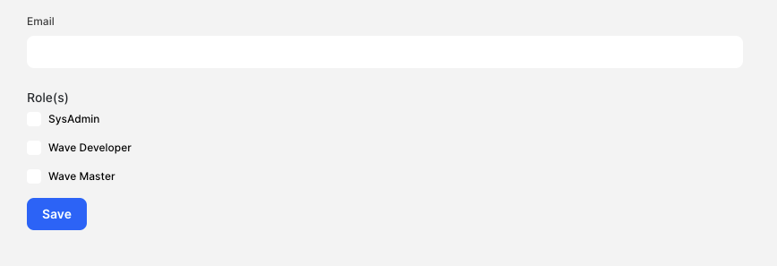 Assign roles (SysAdmin, Wave Developer, Wave Master).